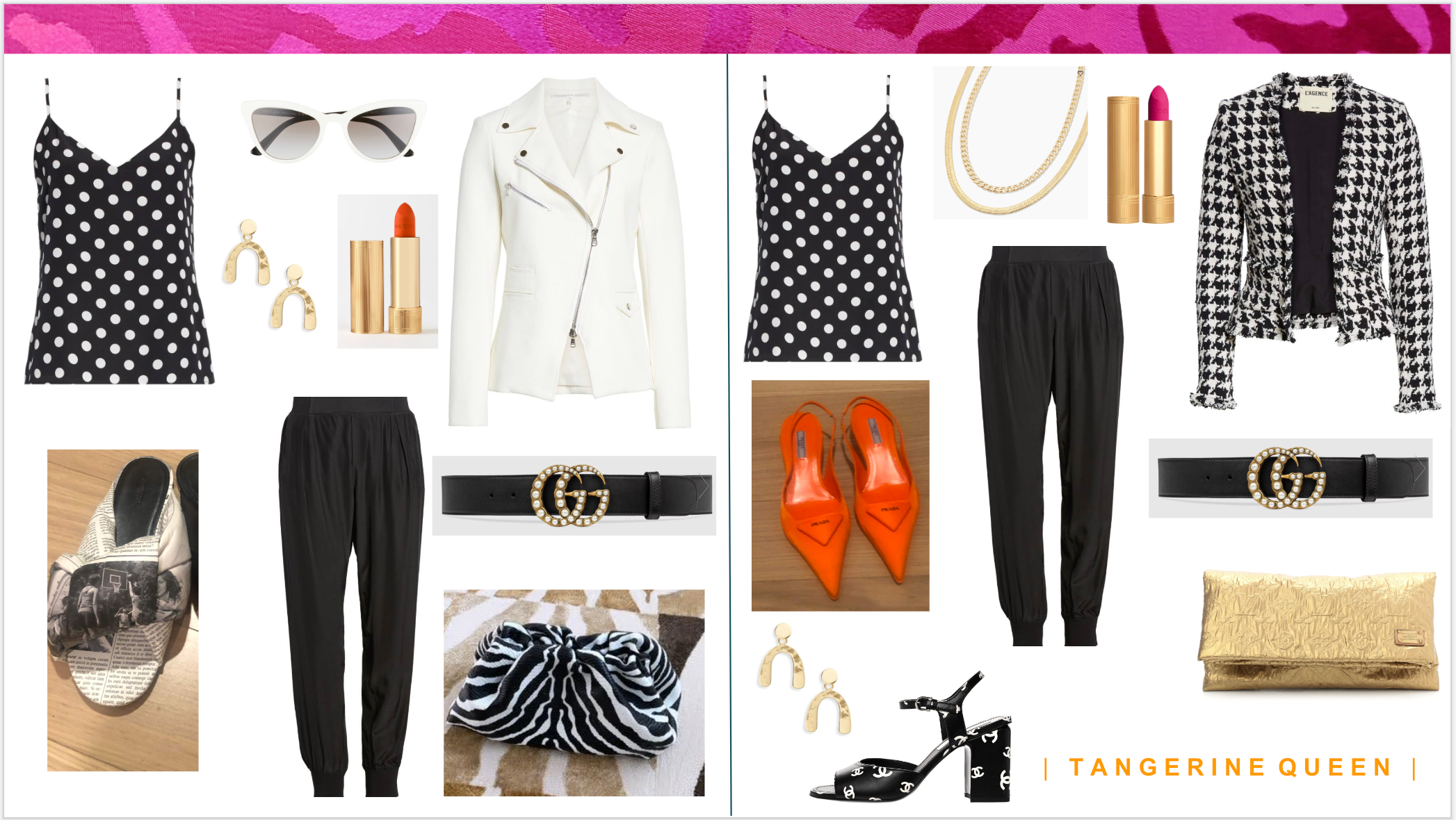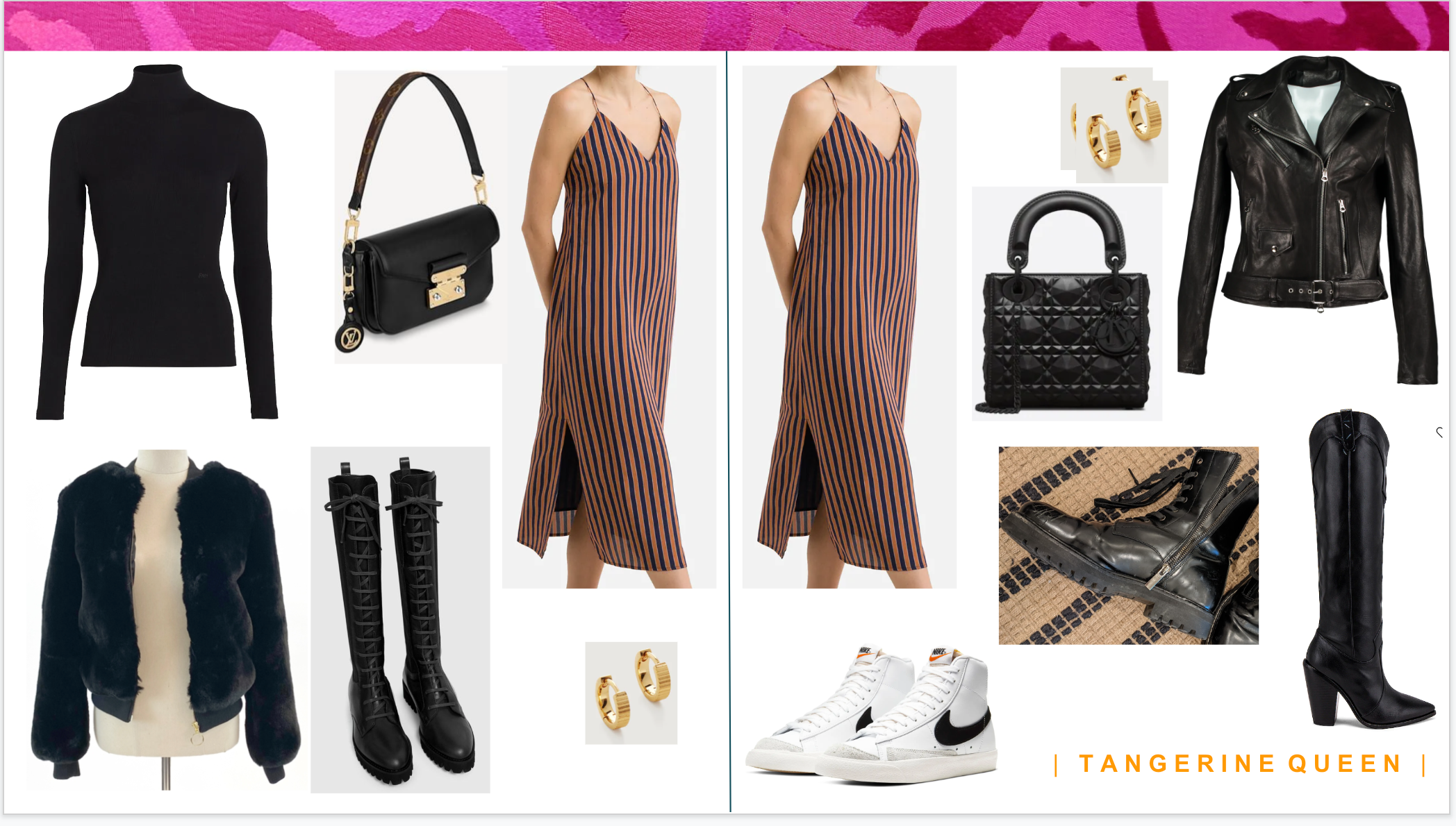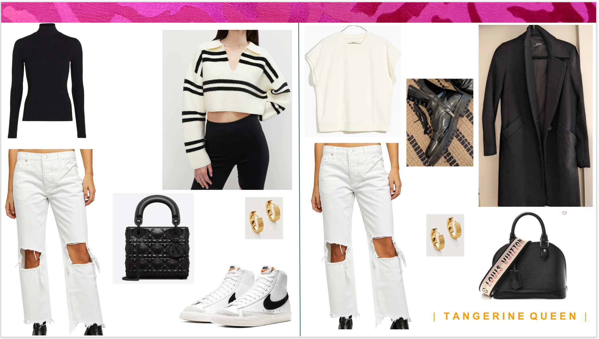 Below are three examples of real virtual closet curations I have completed for clients. Each is a snippet of a larger presentation received after collaborating to determinine their wardrobe needs and goals. Outfits were made with pieces in their existing wardrobe with their indivual style, lifestyle and preferences in mind.