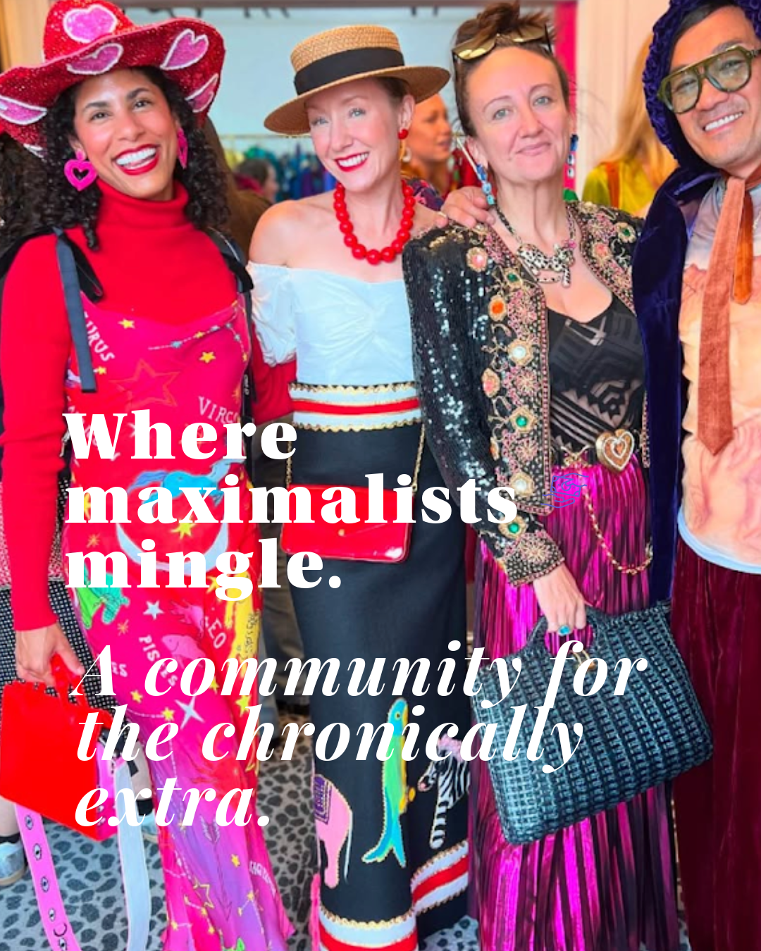 Whether you’re a maximalist or maximalist-curious, this is an excuse to treat getting dressed like an art form. The Maximalist Social Club is your official permission slip to wear your wildest, brightest, most head-turning looks.