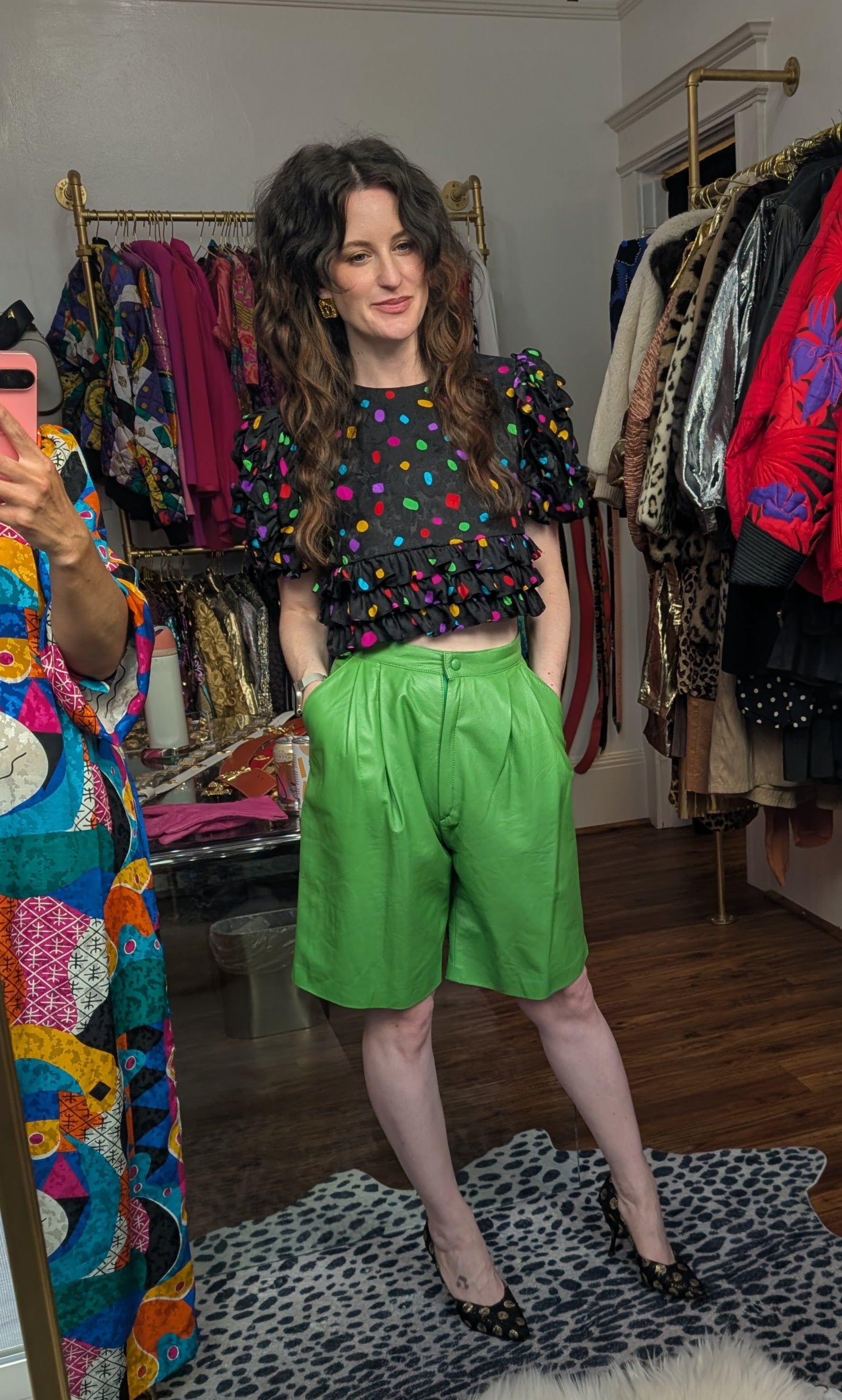 Buttery leather shorts. Fully lined with zipper at front. Pockets at hips.