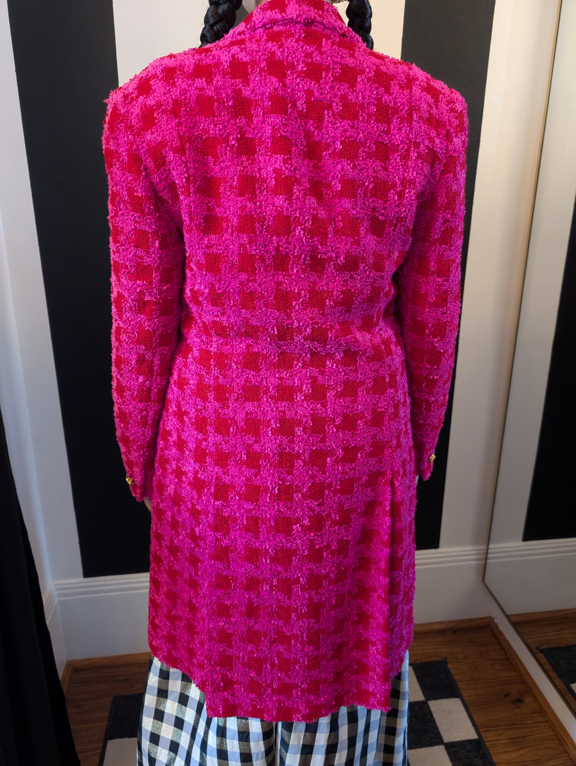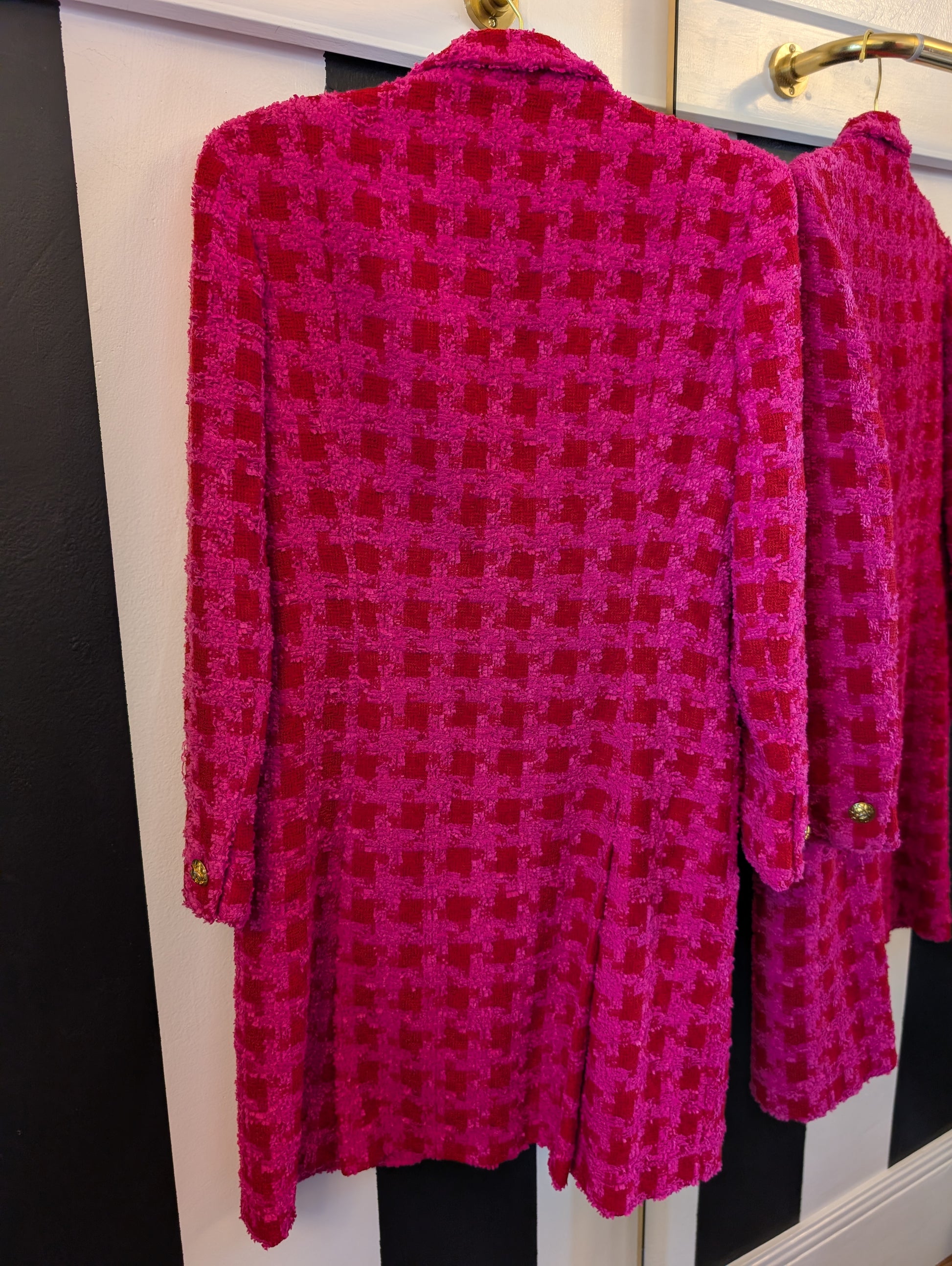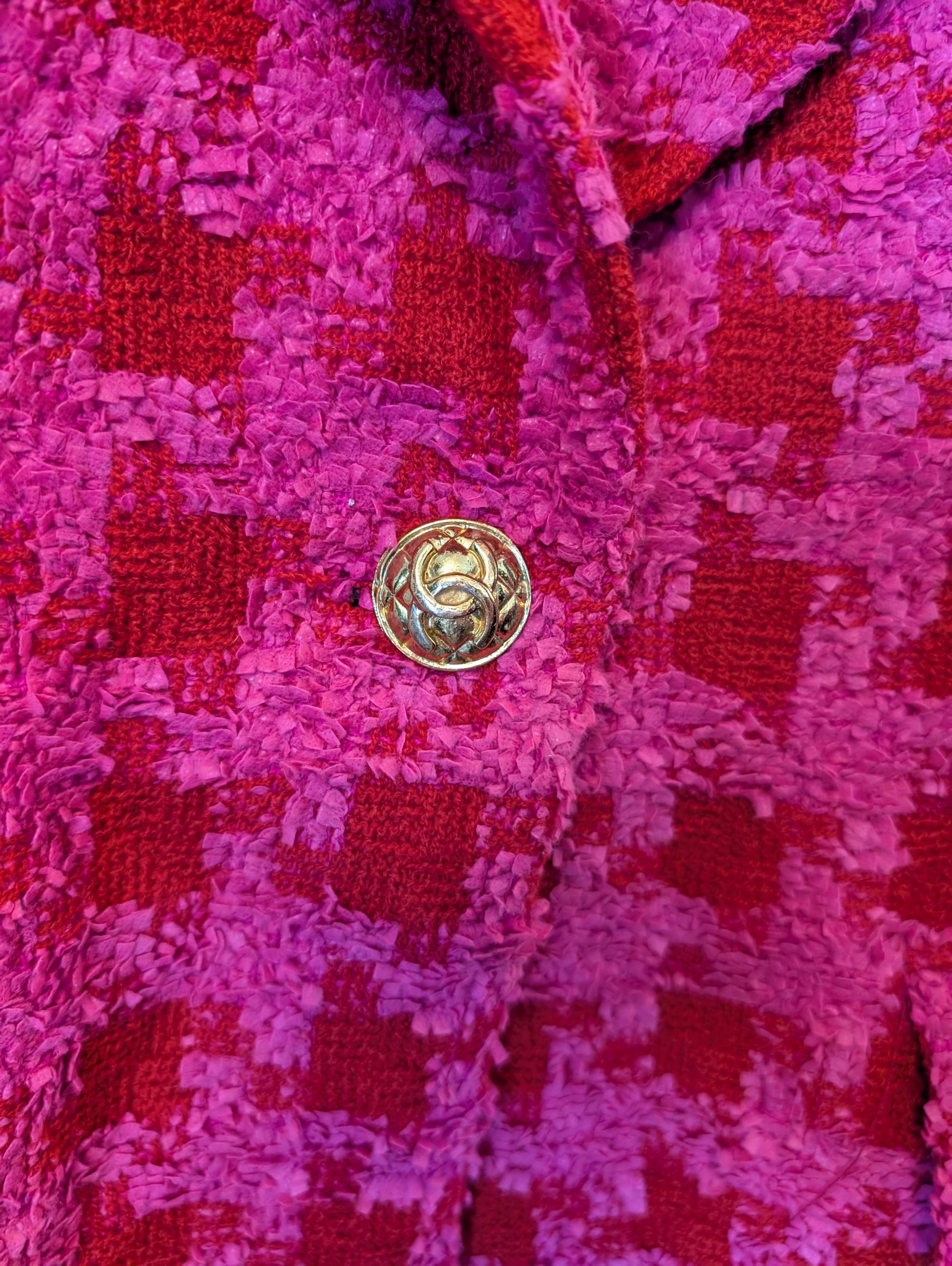Stunning textured plaid tailored jacket. The jacket is true vintage and has been updated with authentic vintage Chanel buttons. The jacket itself is not believed to be Chanel, as it is made in the USA.