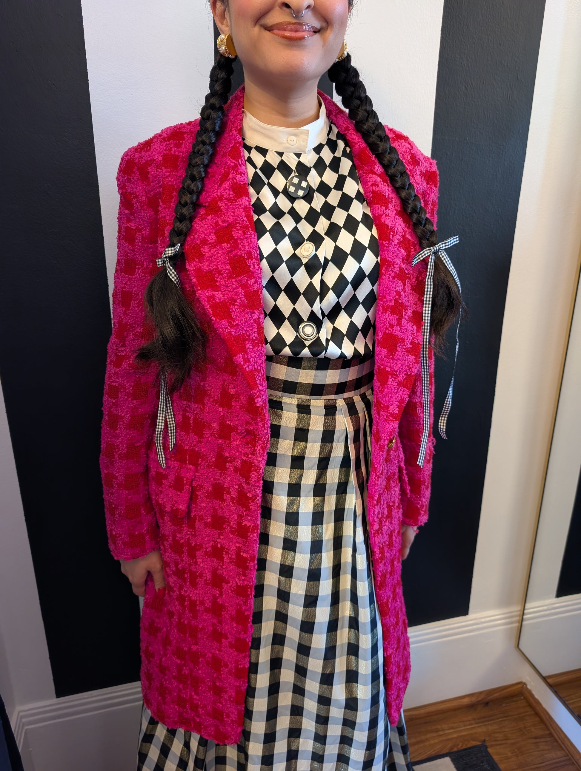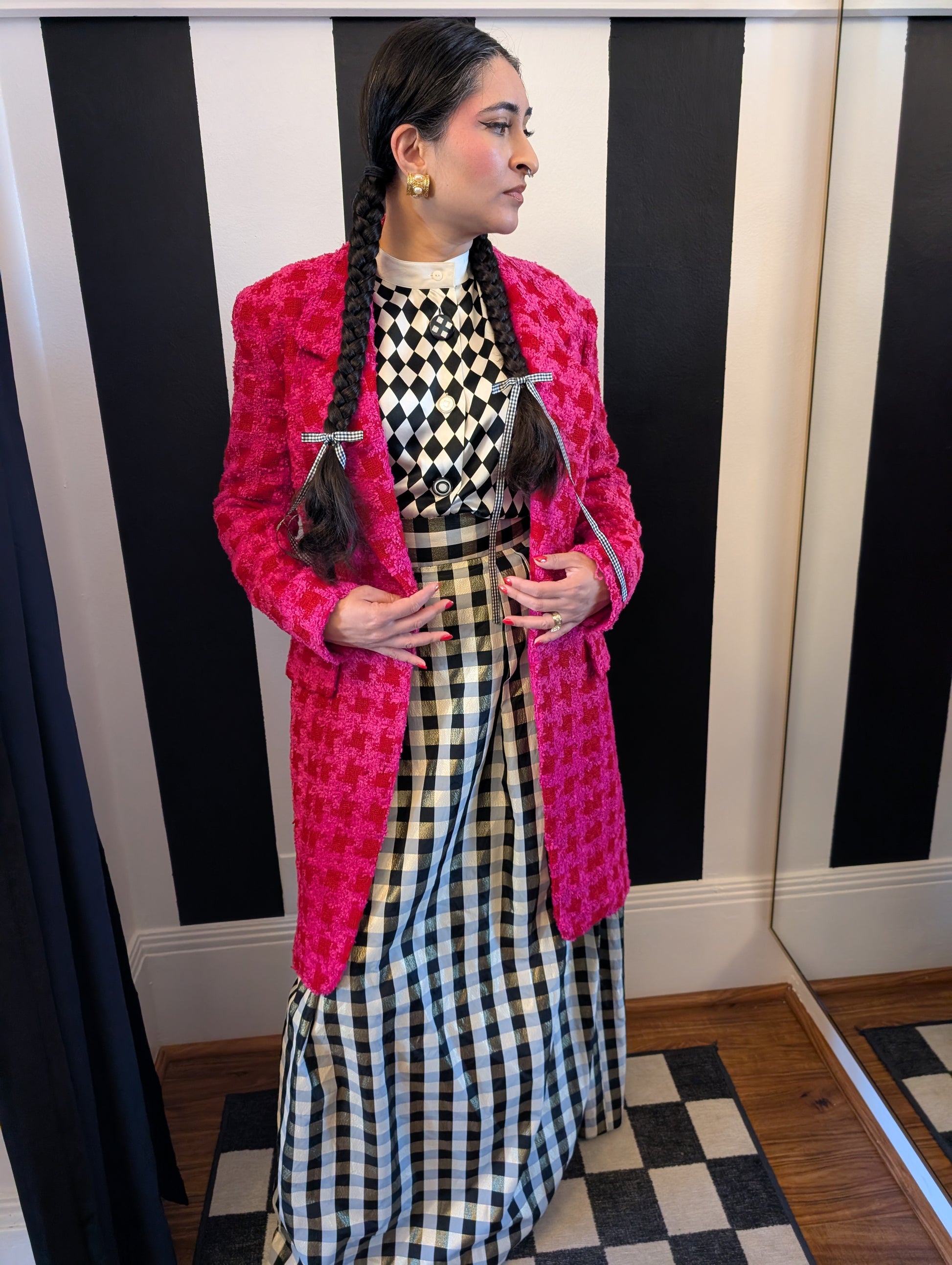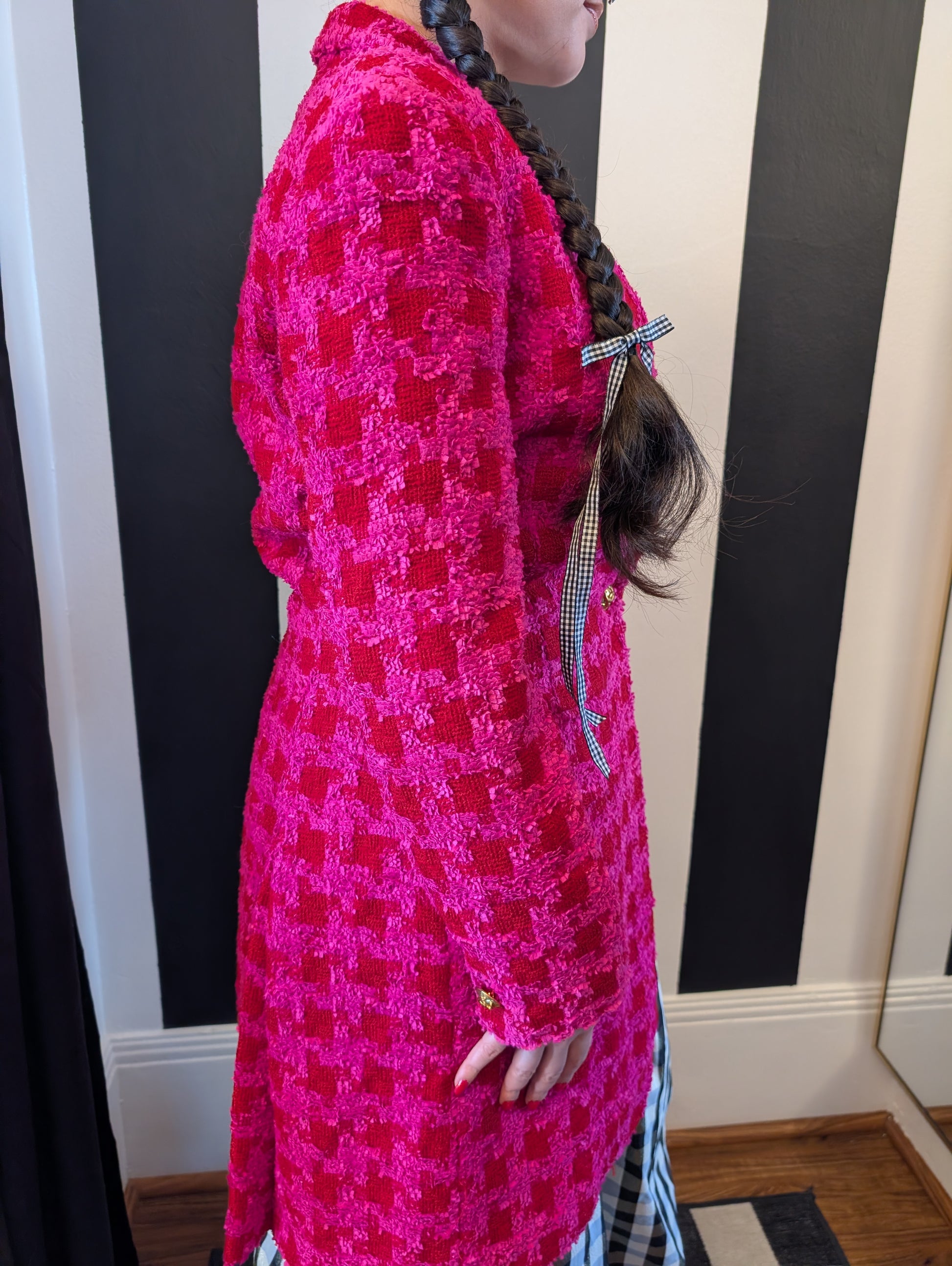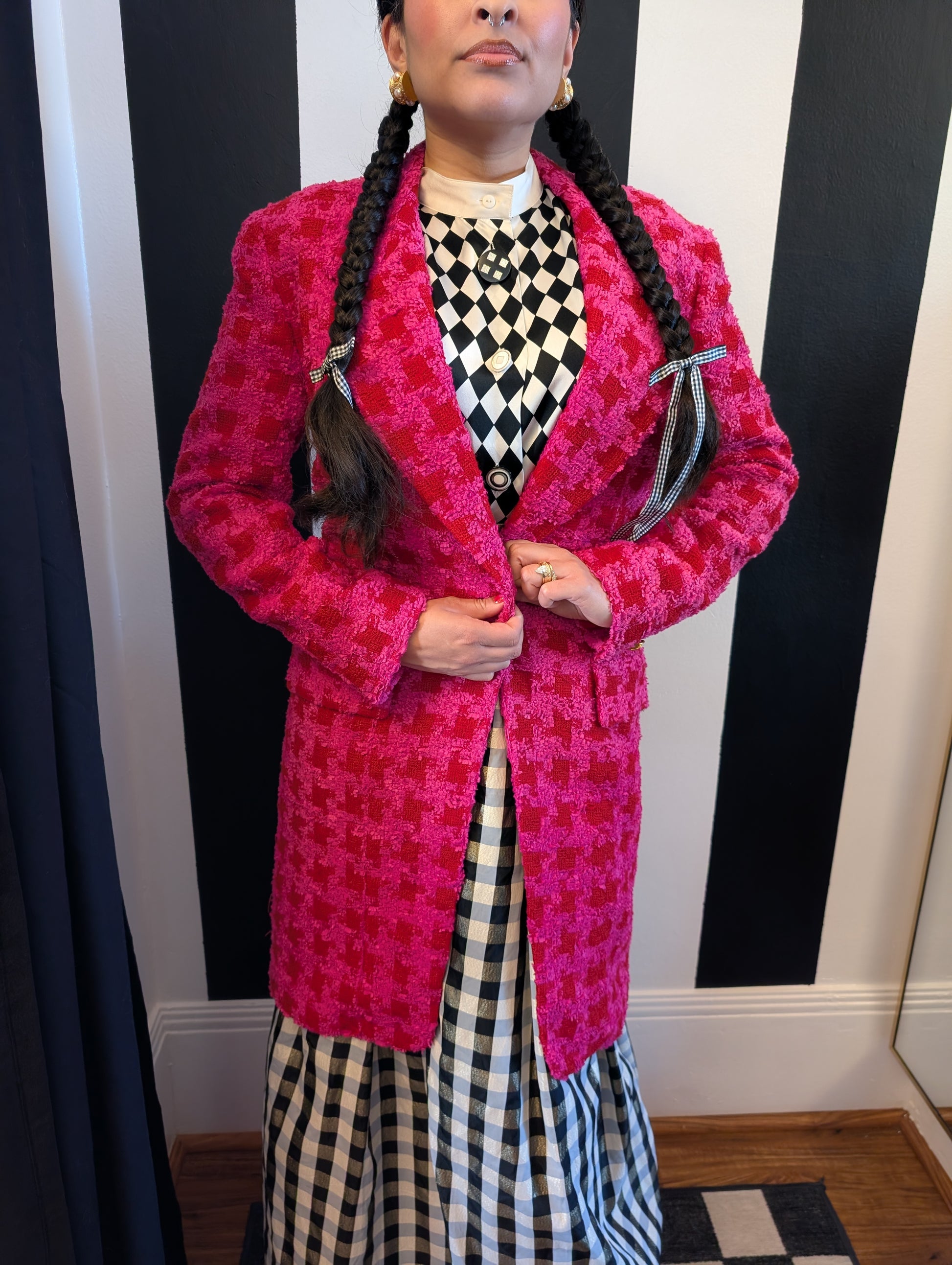 Stunning textured plaid tailored jacket. The jacket is true vintage and has been updated with authentic vintage Chanel buttons. The jacket itself is not believed to be Chanel, as it is made in the USA.